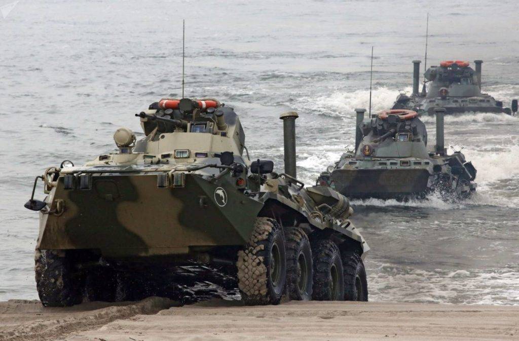 Высадка на берег БТР-82A 2КБФ на учениях морской пехоты на Балтийском море