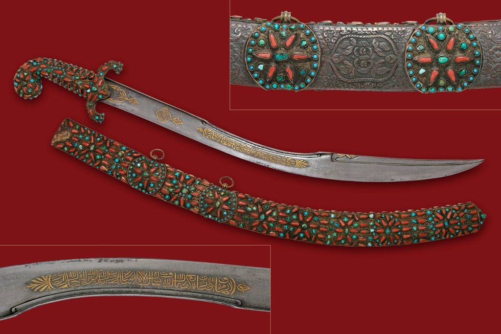 - Сабля пала. Она во многом схожа с килиджем, но елмань здесь еще больше выражена, а изгиб более резкий. Рукоятки собирались из кости/рога на конце рукояти округлые утолщения, гарда в виде перекрестия;
