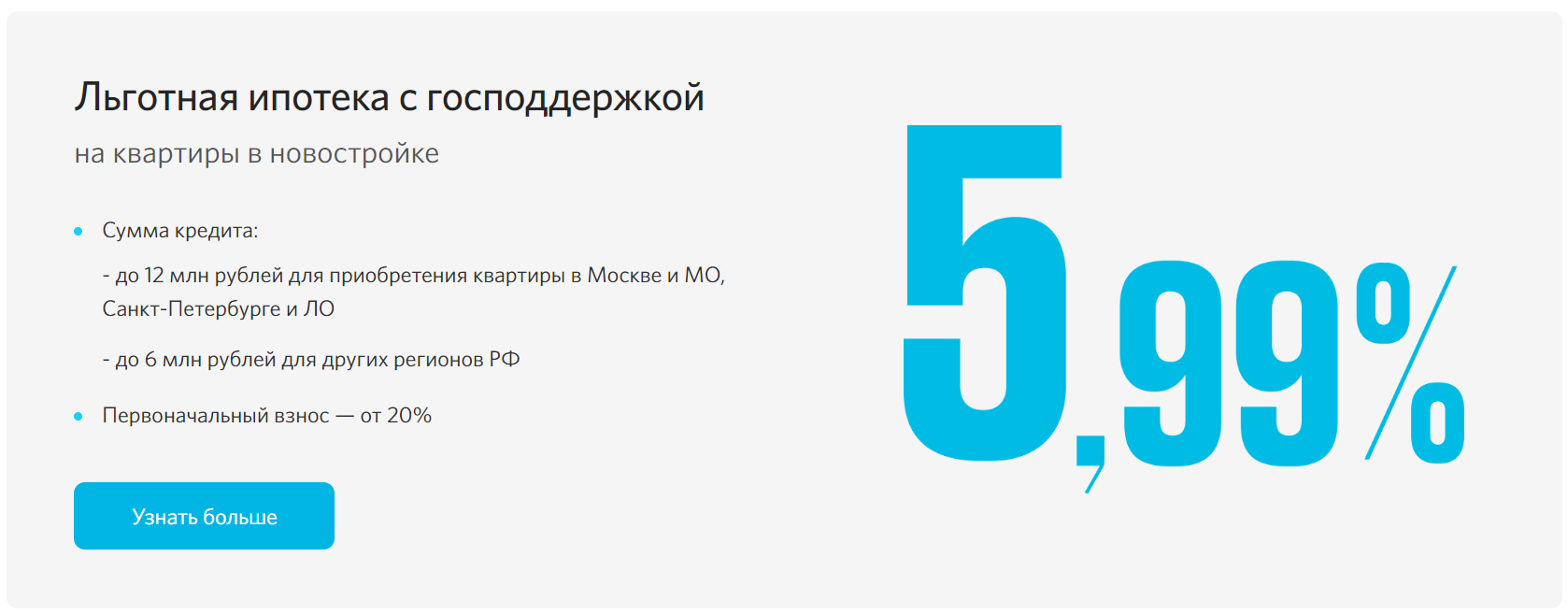– для покупки квартиры в Москве, Санкт-Петербурге и обеих областях возможен кредит до 30 миллионов максимум;