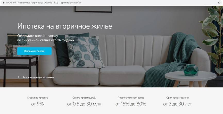 Ипотека в банке «Открытие» на вторичное жилье является востребованной, поскольку позволяет получить кредит на лояльных условиях.