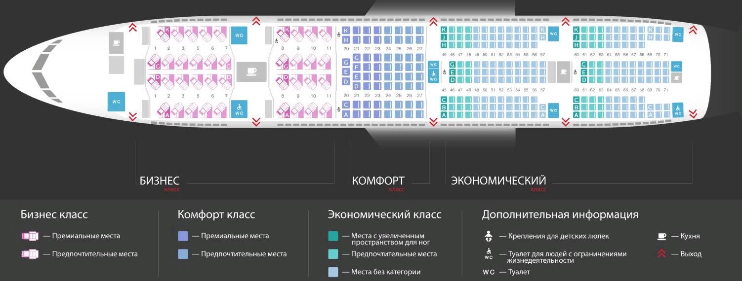 Авиалайнер Боинг 777-300 очень крупный самолет, поэтому заказчики имеют возможность компоновать салон по своему усмотрению.