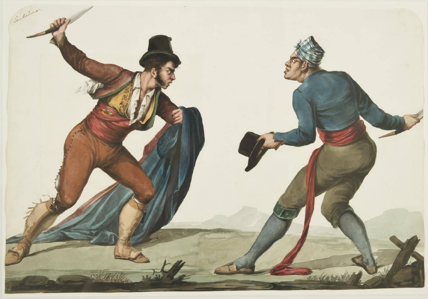 Драчливые испанцы практически сразу напридумывали различные формы дуэлей с ножами, среди которых, например, были поединки между карточными шулерами и теми, кто собирал с них дань — баротеро. Так вот, когда такой бандит подходил к карточным игрокам, он бросал им колоду карт и говорил: «Играйте по моим правилам». И если никто не возражал, он забирал часть выручки. Если же игроки были против, один из них говорил: «У нас свои правила!», — и втыкал нож в землю. После этого они уходили за угол и чаще всего один из них уже не возвращался.
