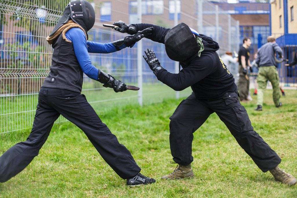 Чем же отличается спортивный ножевой бой от своего кровавого исторического предшественника? Прежде всего отсутствием главного — боевого стального ножа с заточенным клинком. Конечно, особо упоротые гуру пишут, что работают исключительно на настоящих ножах. Однако делают они это почему-то исключительно за закрытыми дверями и в обстановке строжайшей тайны. Ну, а многочисленные трупы учеников они, видимо, закапывают на заднем дворе.