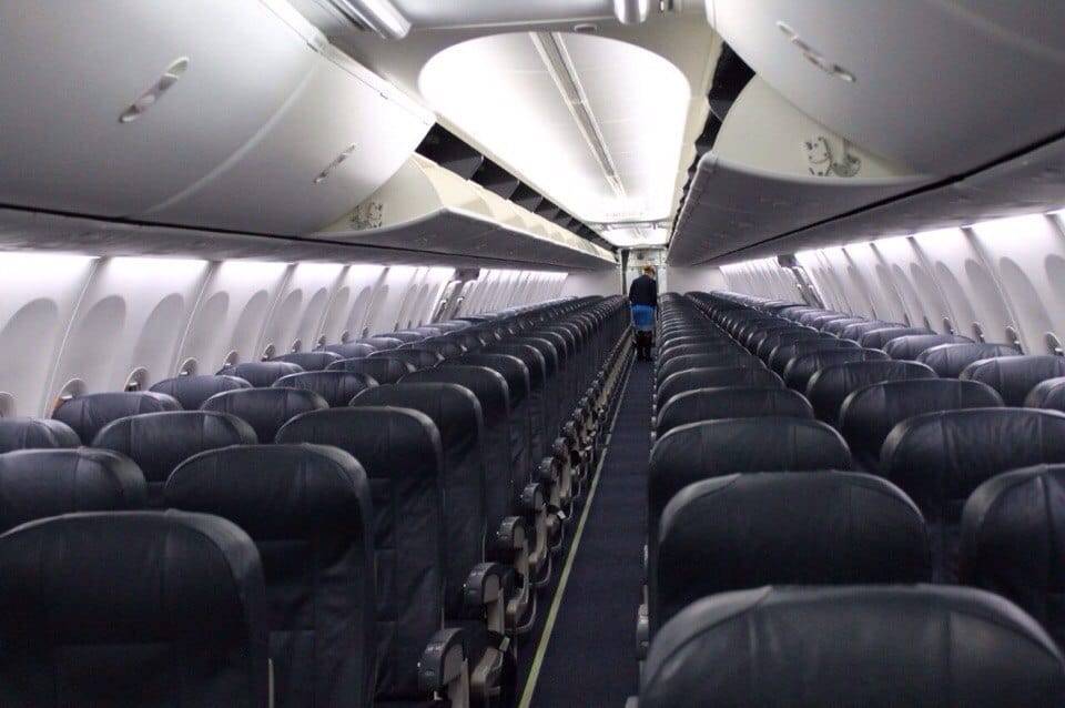 В салоне экономического класса, который занимает весь самолет, вмещается 189 пассажирских кресел. Ряды одинаковые и спинки кресел нигде не откидываются.