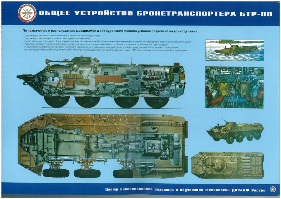 Компоновка БТР-80 условно подразделяется на три модульных блока: