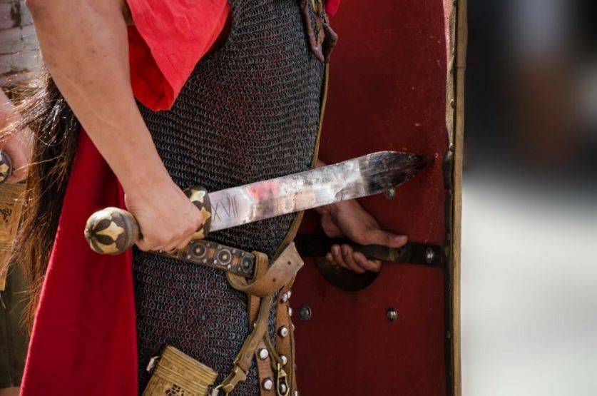 Поначалу их мечом была та же спата, затем появилось прямое широкое или стержневое перекрестие гарды. Меч стал обоюдоострым, лезвия постепенно стали почти параллельными и сходили на плавное острие только у самого конца. Колоть ими никто и не пытался.