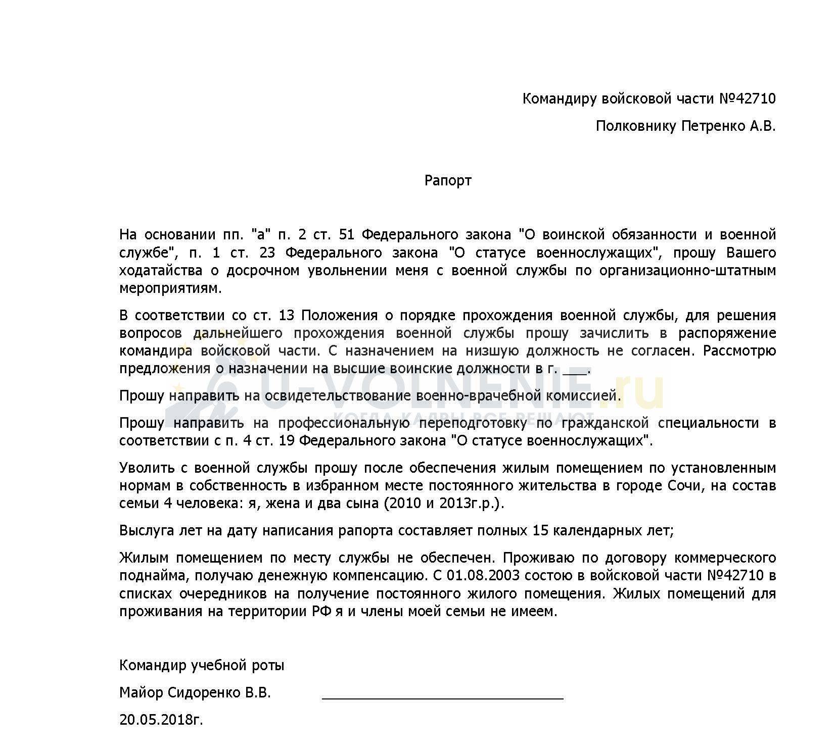Читайте по теме: Рапорт на увольнение по выслуге лет