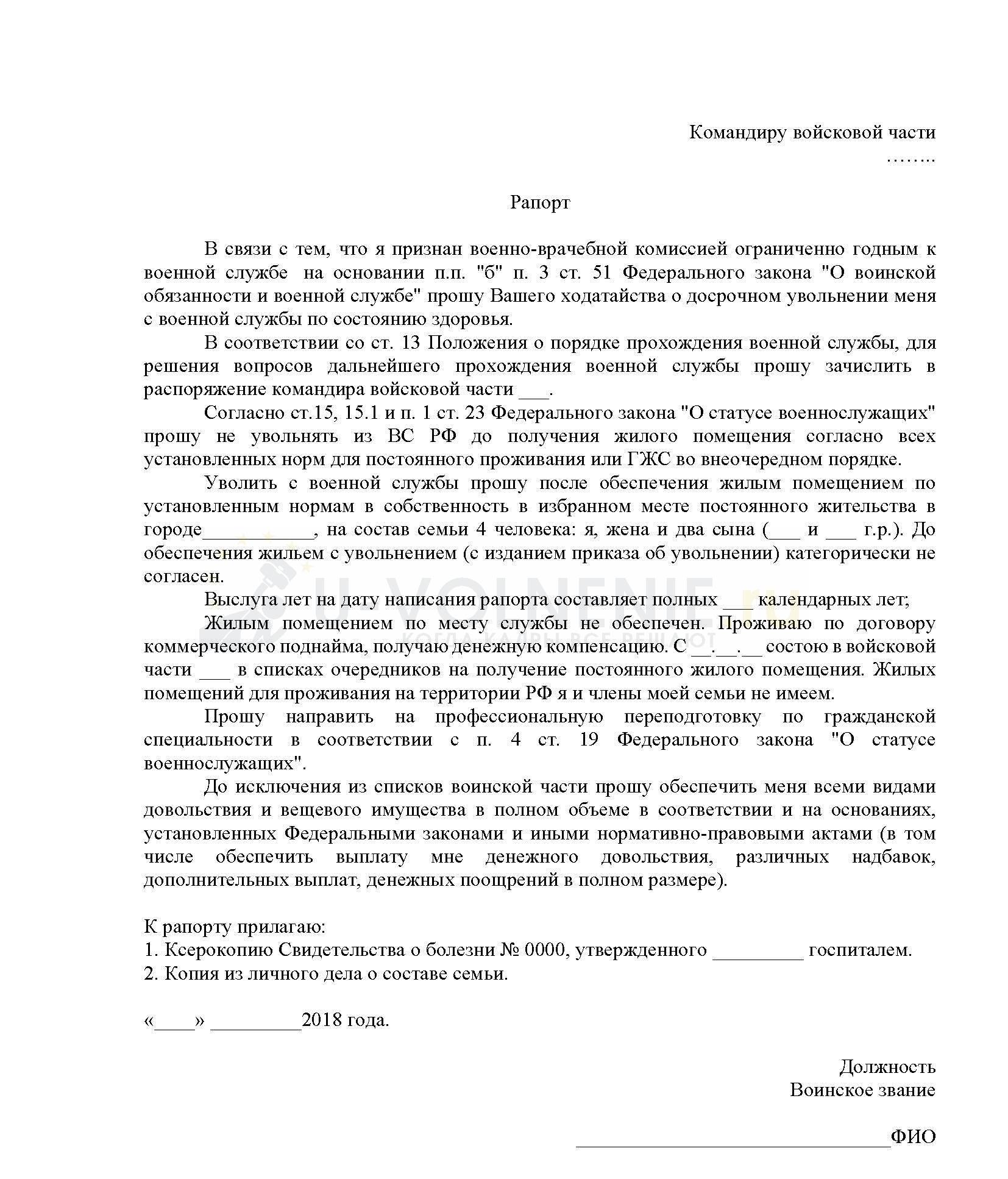образец рапорта на увольнение по состоянию здоровья военнослужащего