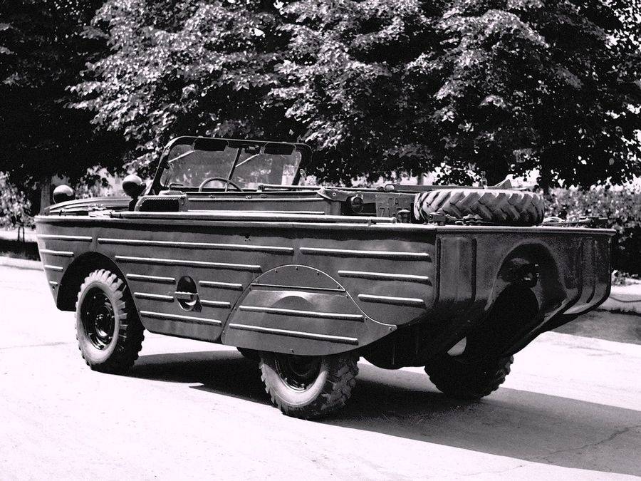 Нечто подобное сделали в середине войны американцы. Их амфибный Ford GPA сошел с конвейера в 1942 году и поставлялся в Советский Союз по программе ленд-лиза. Всего Красная армия получила порядка 3 тысяч единиц таких плавающих автомобилей.