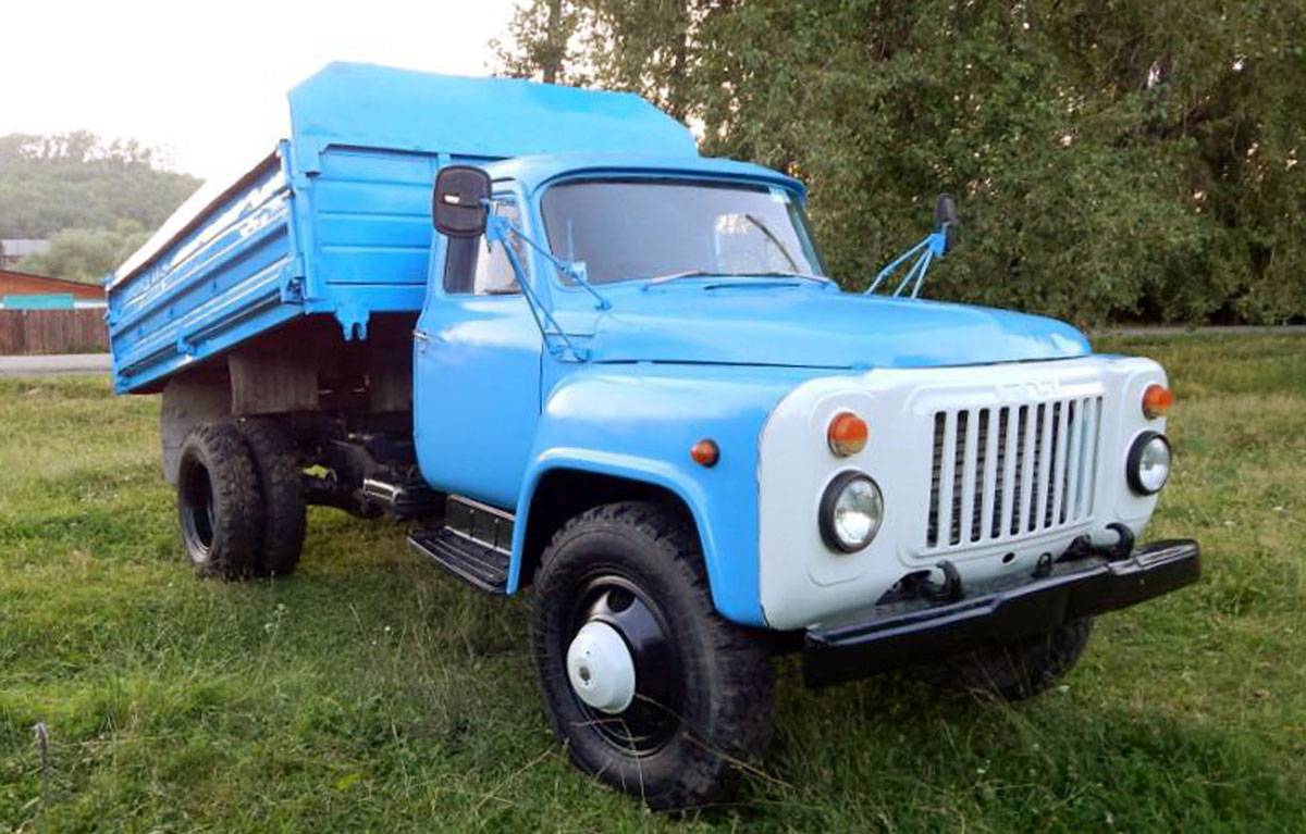 Ремонтопригодный и в меру надежный ГАЗ-53 с самосвальным механизмом продолжает работать в частных и коммерческих хозяйствах. Достаточно прочный кузов оснащается автоматическим устройством подъема. Зависимая рессорная подвеска обеспечивает жесткость хода, которая на переднем мосту смягчается телескопическими амортизаторами. На автомобиле используется тормозной механизм барабанного типа. Гидроусилитель руля отсутствует, что усложняет управление.