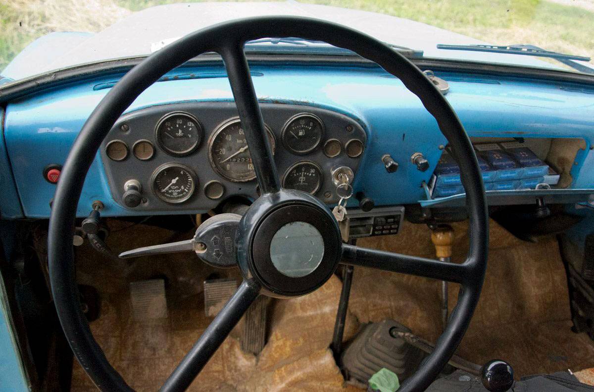 Справа от ручки КПП находился рычаг управления кузова. Он имел два положения: «подъём» и «нейтрально».
