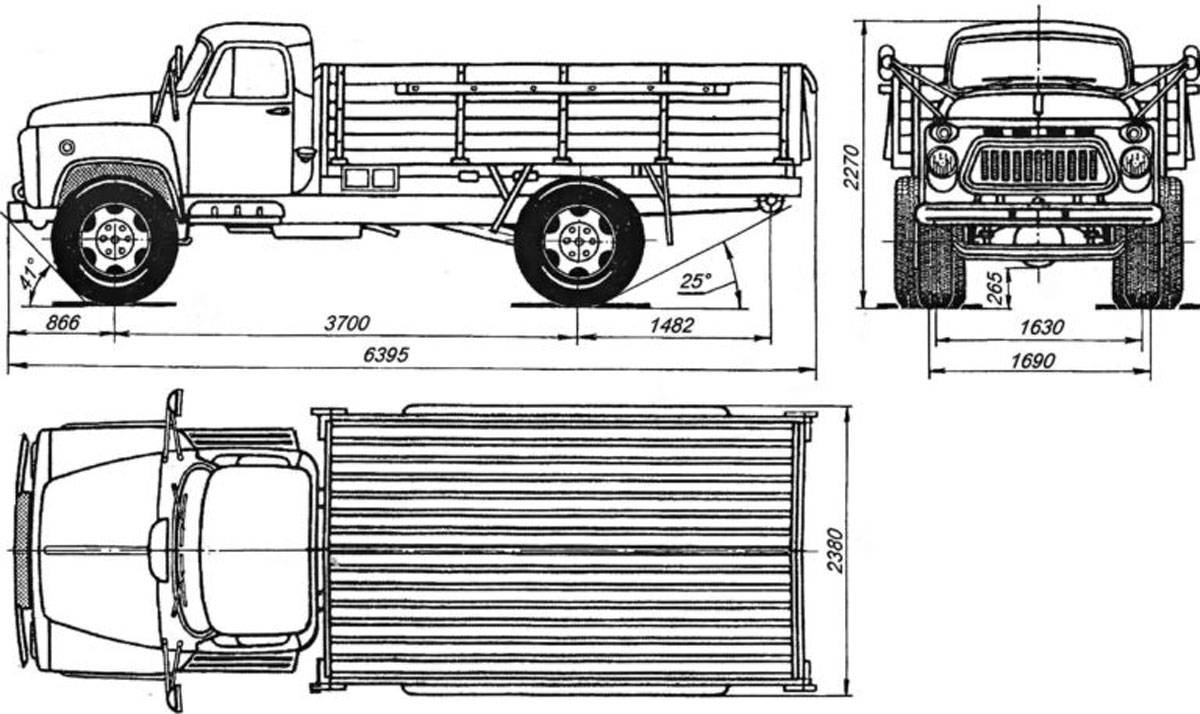 Габаритные размеры самосвала ГАЗ-53: