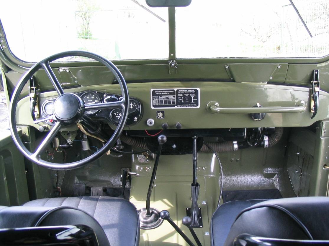 Первые экземпляры машины чуть отличались от серийных. Чуть иная линя капота, какое-то не такое лобовое стекло, но в общем и целом облик «Козлика» не менялся долгие годы. Почему «Козлика»? Да так уж прозвали этот прыгучий вездеход в народе. Жесткая подвеска и узкая колесная база заставляли машину резво реагировать на каждую кочку. На максимальной скорости это становилось не сколько весело, сколько опасно. В остальном же «Козлик» был выше всяких похвал. Ни английский Land Rover, ни американский Willys не могли тягаться с нашим вездеходом на пересеченной местности. И по оснащенности наш джип выглядел солидно. Имелся вентилятор салона и даже отопитель.