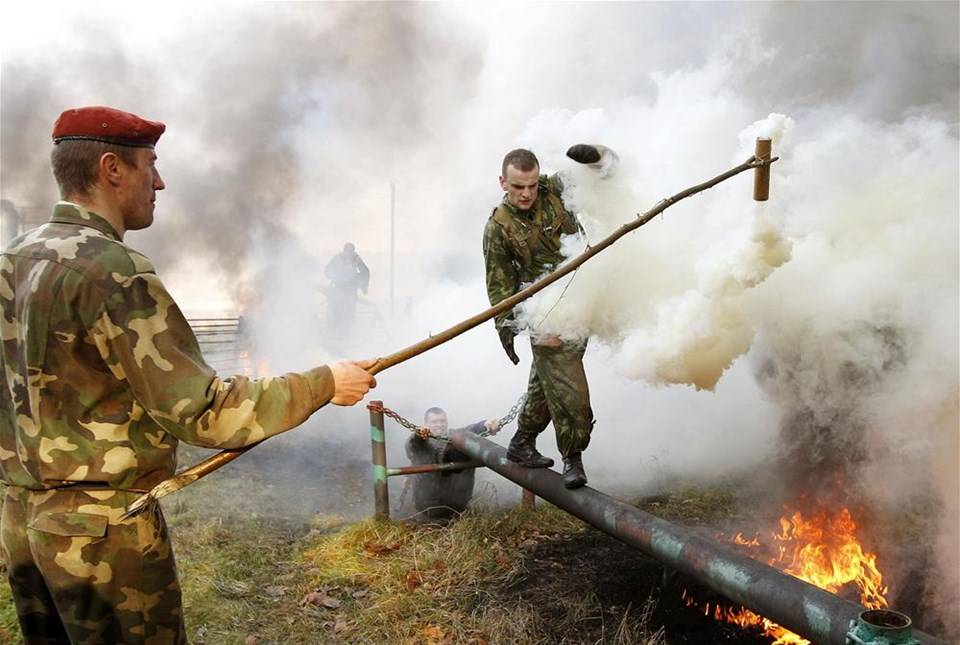 По истечении 2 часов марш-бросок заканчивается и начинается прохождение специальной полосы препятствий.