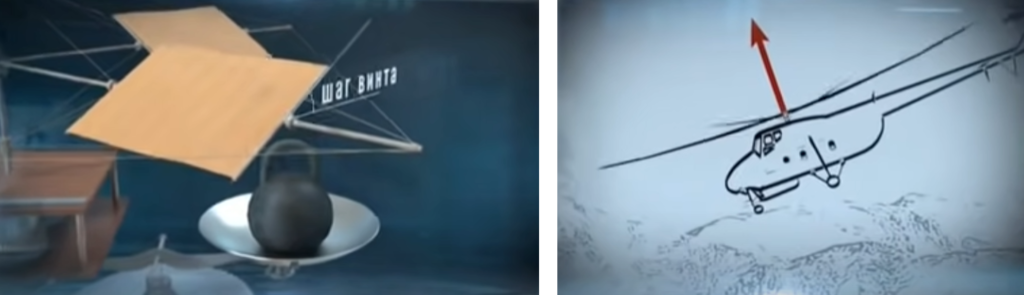 Рыкачёв установил, что подъемная сила зависит не только от скорости вращения лопастей, но и от угла установки лопастей относительно продольной оси — шага винта. При увеличении шага подъемная сила растет.