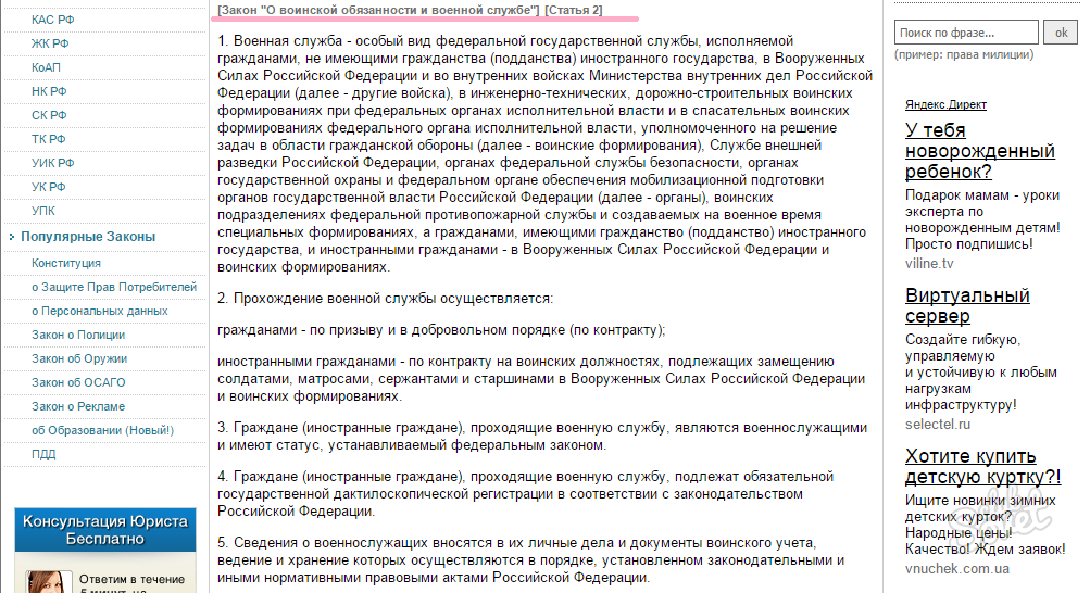Всегда нужно помнить о своих правах, которые заключаются в следующем: при наступлении двадцати семи лет никого не могут взять на службу в армию (если не идет война, конечно).