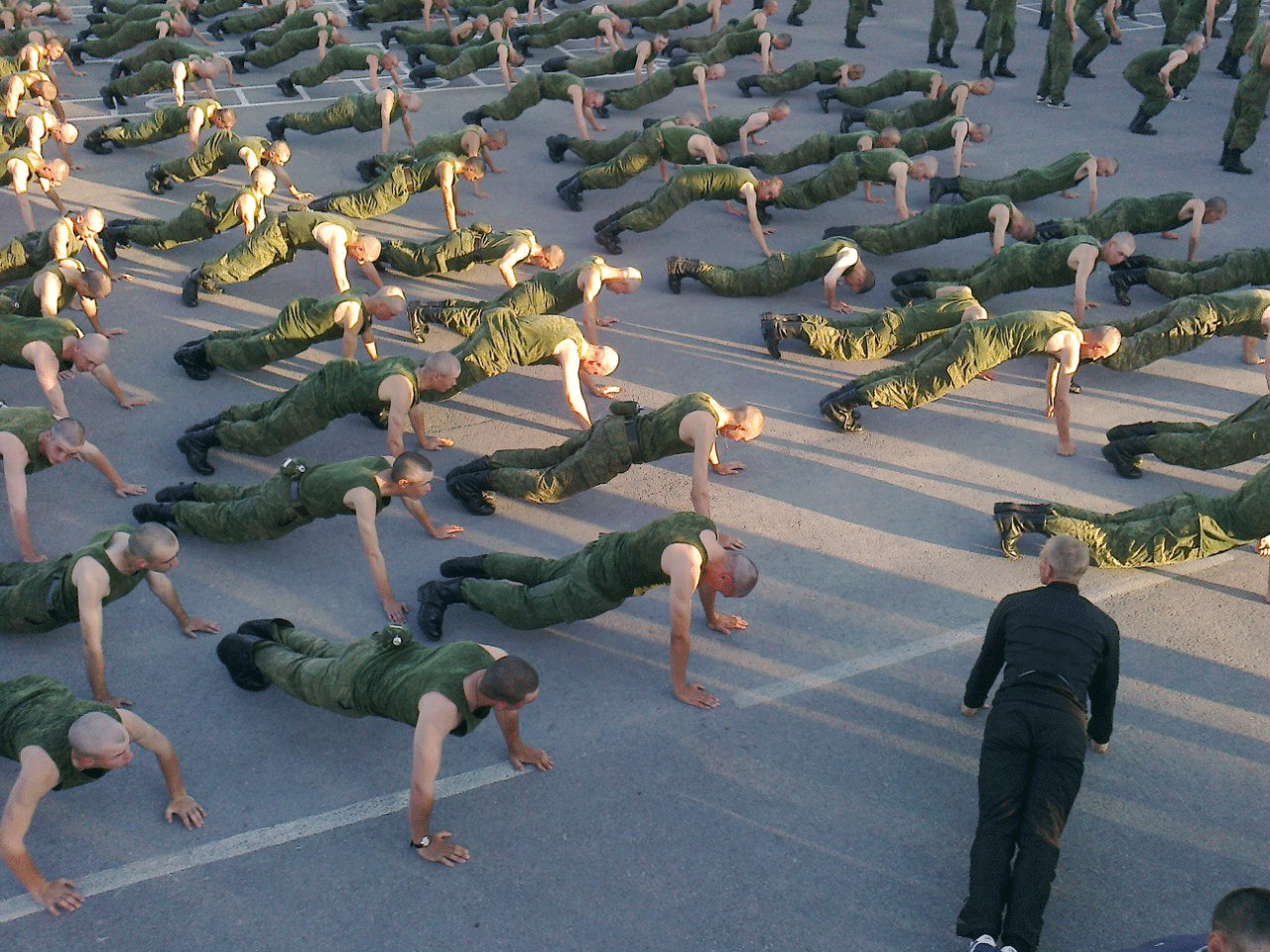 В расписании предусмотрена пятнадцатиминутная прогулка вечером, но не стоит думать, что личный состав праздно гуляет по территории части. Обычно она выглядит как построение на плацу и марш под военные песни.
