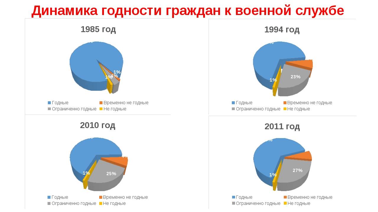 Основная часть лиц имеют значительные проблемы со здоровьем, которые являются хроническими заболеваниями с большой длительностью. При этом регламентировано, что прохождение службы невозможно только в мирное время. Под общую мобилизацию во время военных действий человек подходит.