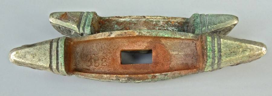 Были так же распространены металлические рукояти. Они также могли быть составными из нескольких элементов – накладки, шайбы, заклепки и цельнометаллические – из металлического основания и нескольких заклепок, для прикрепления рукояти к полосе клинка.