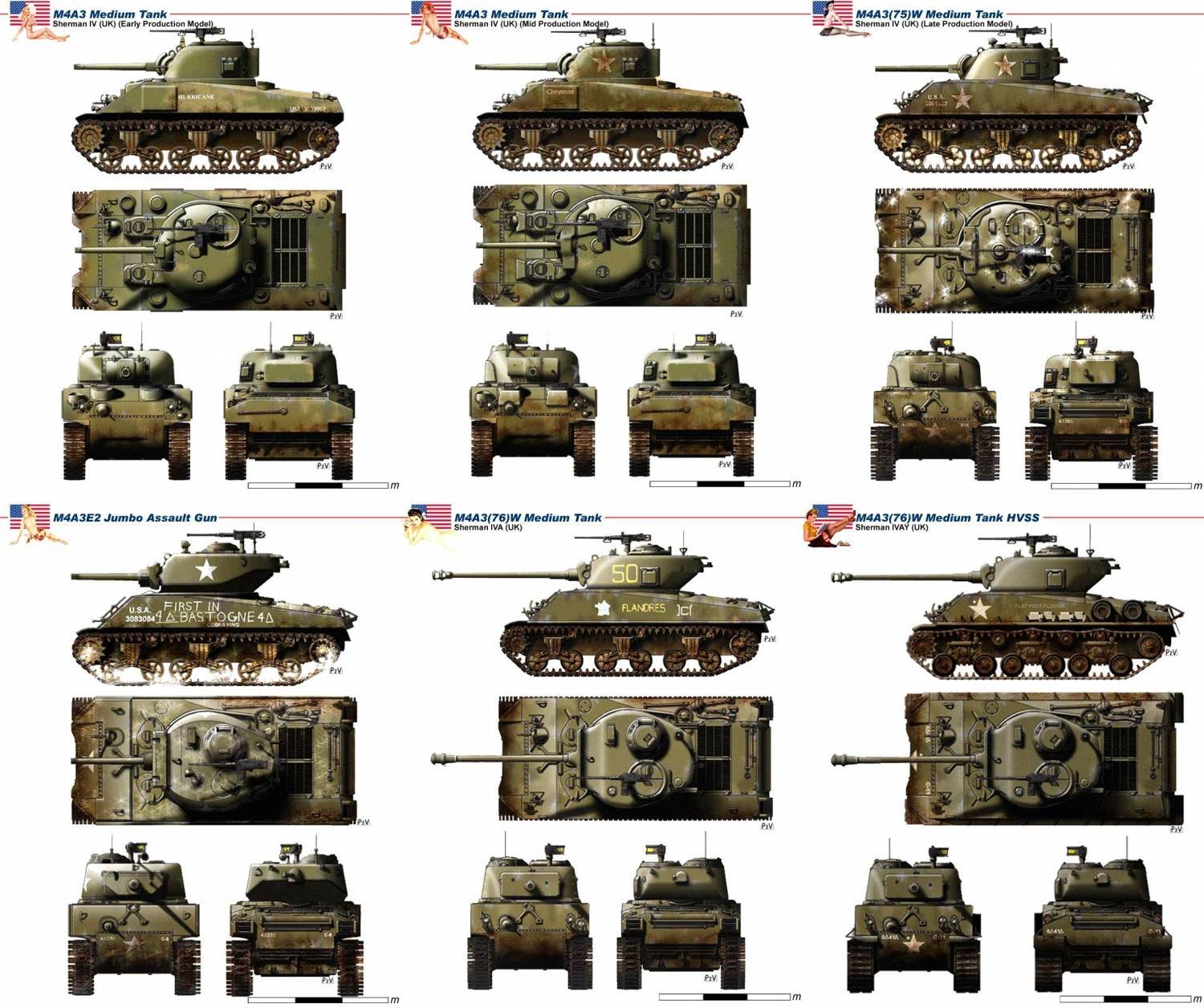 Помимо него, Шерман получил ещё 4 варианта силовой установки, в итоге появилось 6 модификаций.