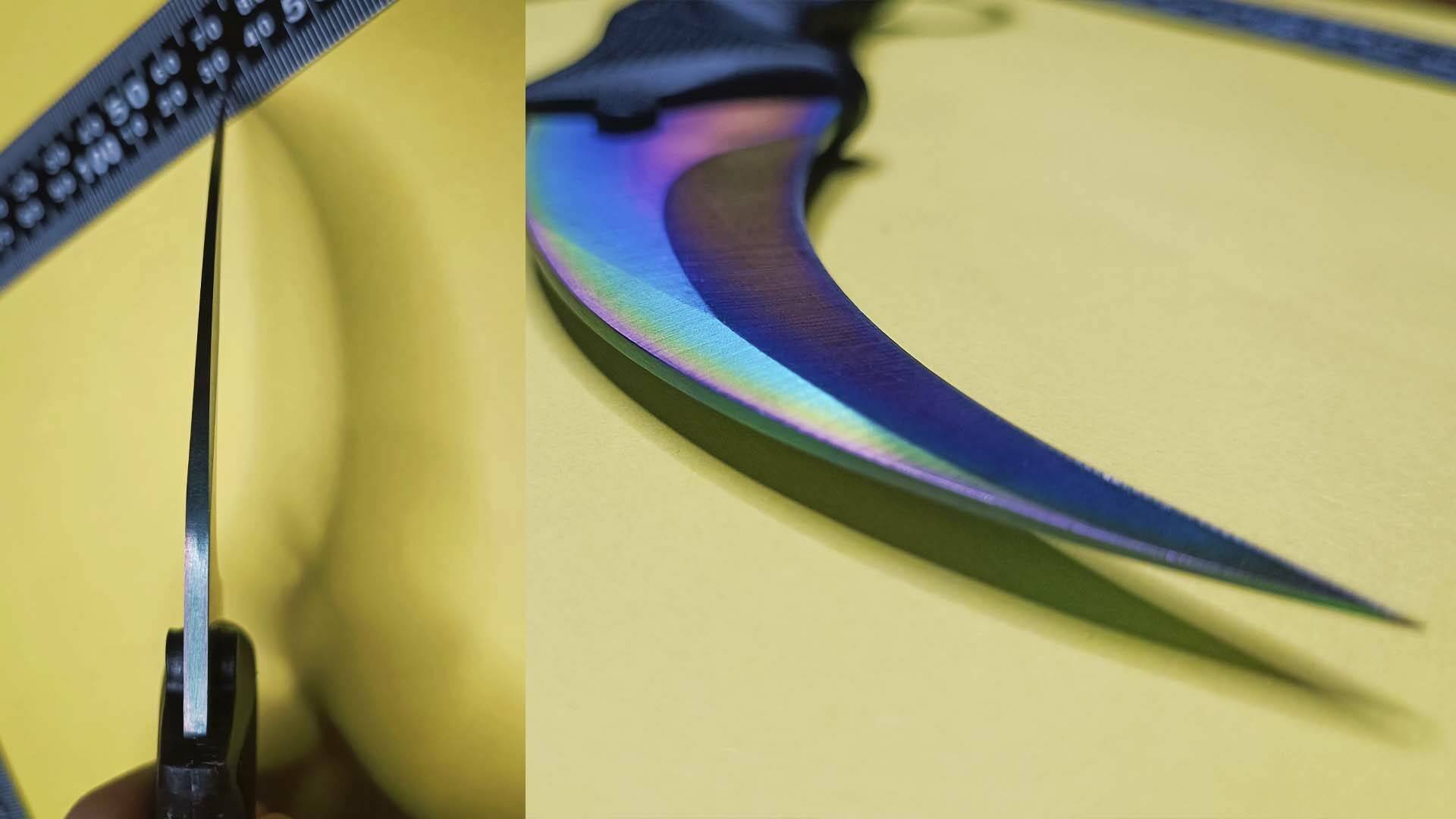 - Форма керамбита, а следовательно и техника ближнего боя с ним позволяет наносить многократные порезы за более короткое время;