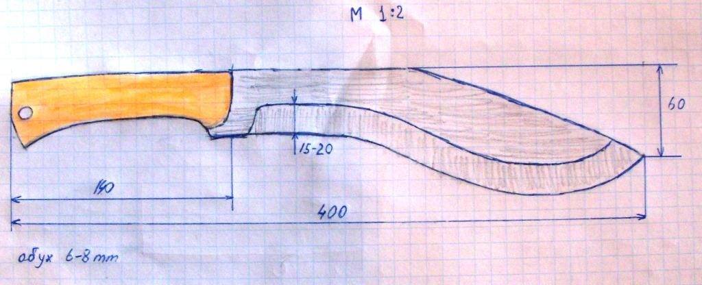 Изготовление ножа кукри своими руками выполняется по следующему алгоритму: