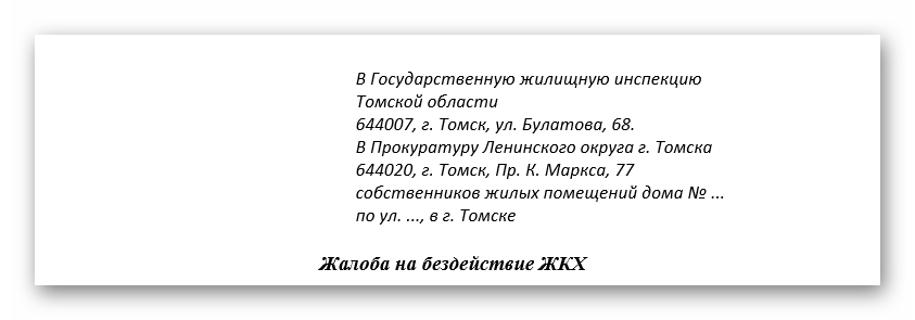 Если требуется, чтобы ситуация была рассмотрена определённым государственным органом, просьба об этом должна присутствовать в тексте жалобы.