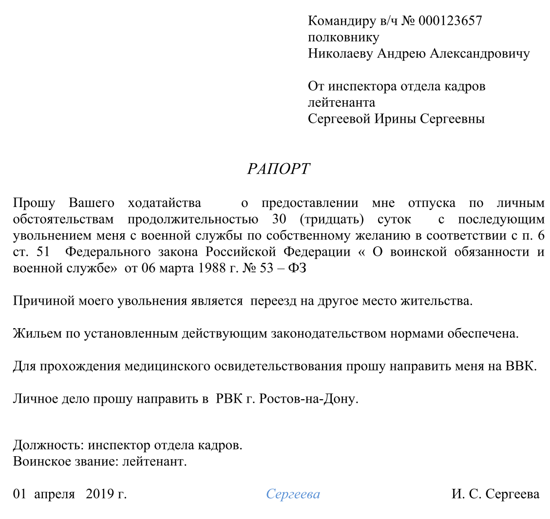 Рапорт на отпуск с последующим увольнением