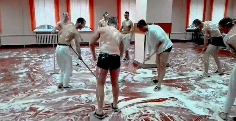 Согласно традициям, ритуальные посвящения в новое звания сопровождаются ударами по причинному месту