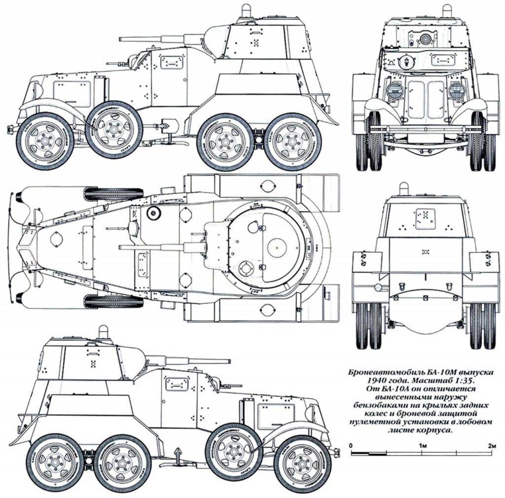 Бронеавтомобиль БА-6 выпускали в 1936–1938 гг. Шасси — модернизированное ГАЗ-ААА, двигатель — 40-сильный (позднее на БА-6М с измененной рамой и башней — 50-сильный), 3-ступенчатая коробка передач с демультипликатором. Броня 8 мм, скорость до 42 км/ч. Построили 306 машин, часть — с радиостанциями. Сделали также прототип для движения по рельсам. Модернизированных БА-10 с 50-сильным мотором до осени 1941-го выпустили 3331 экземпляр.