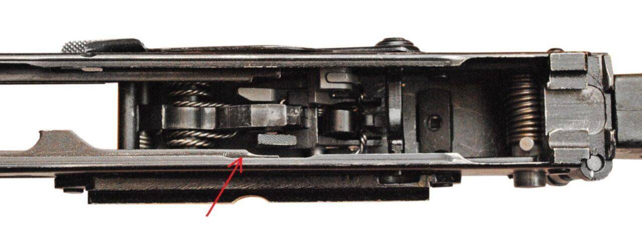 - чтобы нахождение возвратного механизма оставить в продольном канале затворной рамы, ее оставили литой;