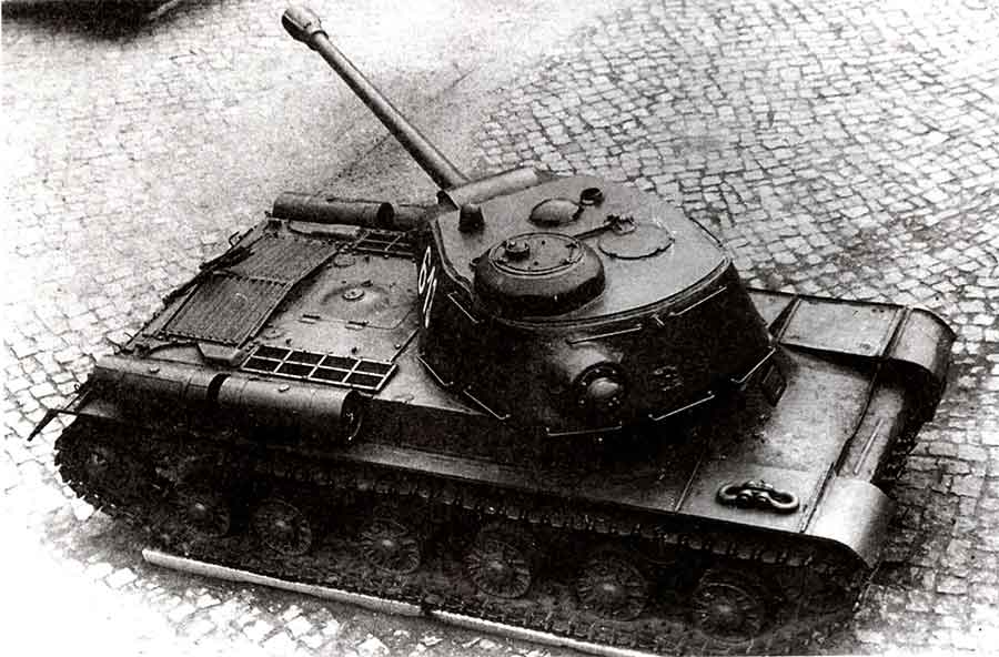 После появления на поле боя немецких танков «Тигр» темп разработки форсировали и зимой 1943 оба варианта КВ-13, переименованного в ИС (Иосиф Сталин) затребовали на госиспытания. ИС был признан перспективным, но стать первым основным боевым танком ему было не суждено. Испытания трофейных «Тигров» выявили, что эффективнее всего с ним может бороться пушка калибра 85мм.