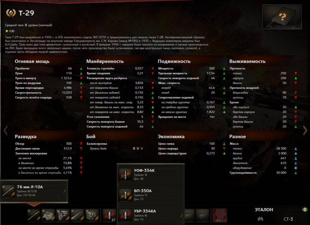 Советский Т-29 – представляет собой стоковую версию советского СТ-4 Т-28, так что – хотите попробовать его сейчас, сделать это довольно легко, правда уровень боев будет не тот и это проблема. Как любой фугасный танк 3-его уровня, Т-29 будет очень силен в топе и практически бесполезен внизу списка.