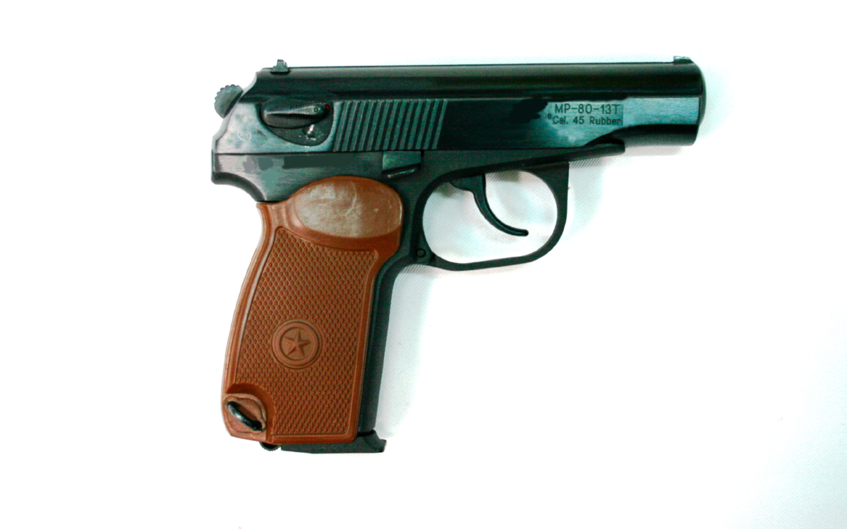 Теперь давайте перейдём к пистолету такого-же плана только с измененным калибром и размером, это у нас мр 80-13т Тут уже по жестче ну как жестче относительно, этот пистолет был разработан как новая версия МР 79 у него более мощный калибр пули 45 рабер, которая имеет больше пробивную способность и лучше остановочную силу по сравнению с МР-79-9тм.
