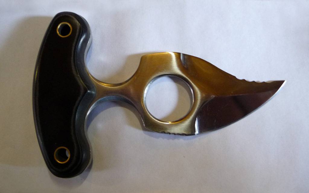 Если ручка слишком маленькая или тонкая, изделие может проворачиваться при ударе и наносить травмы своему владельцу. Хороши шероховатые толстые накладки. Они предотвращают скольжение даже в том случае, если рука вспотела или намокла по другой причине. Варианты из микарты и стеклопластика более практичны, чем из полированной древесины или кости. При выборе острой части следует отдать предпочтение нержавеющей стали. Металлические изделия из углеродки, которые носят на теле, быстро окисляются, требуют более тщательного ухода.