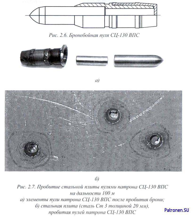 СЦ-130 ВПС — повышенной пробивной способности с бронебойной пулей с двойным сердечником.