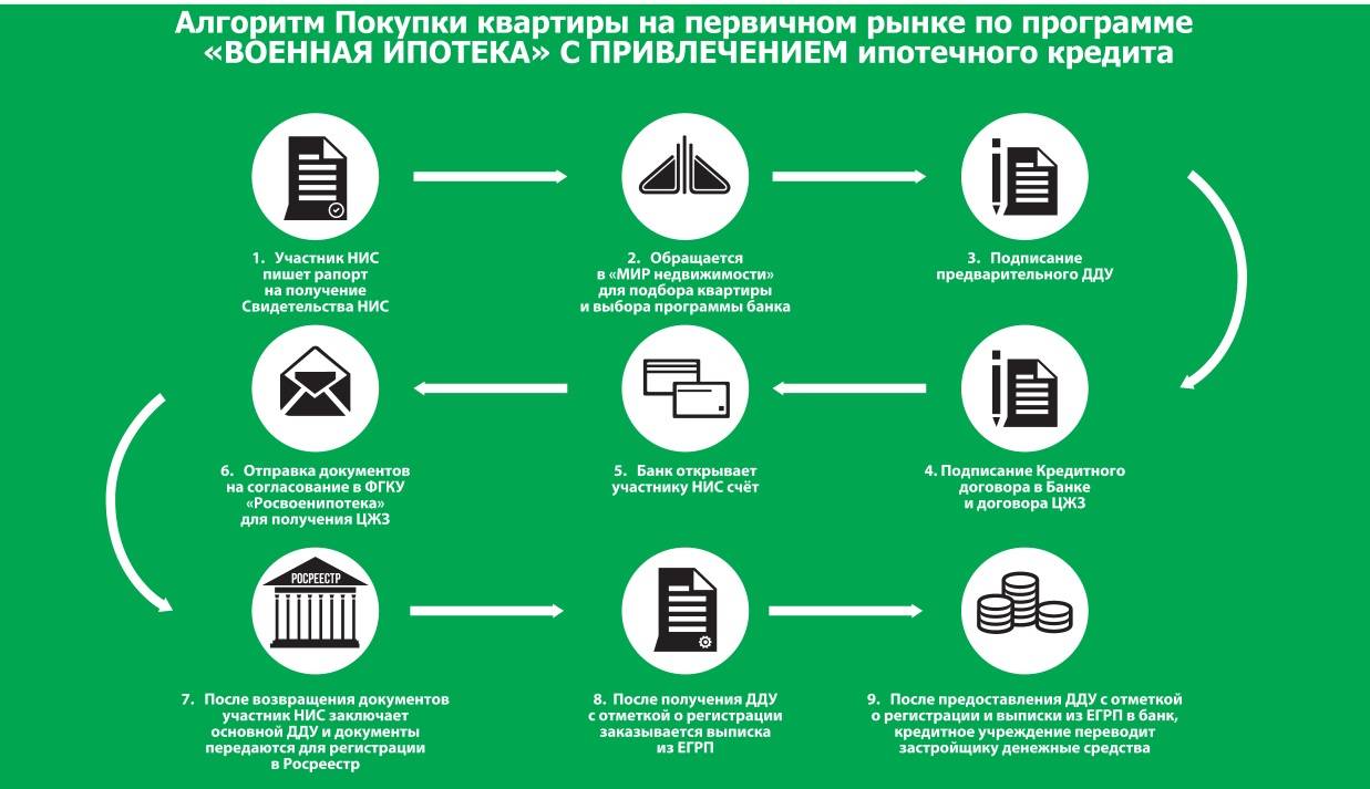 Порядок оформления военной ипотеки выглядит следующим образом:
