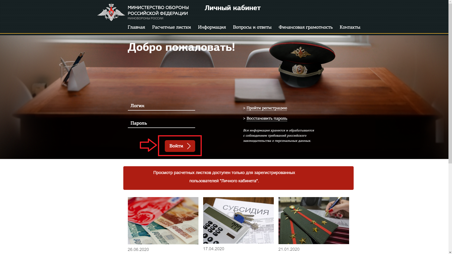 Войти в личный кабинет можно двумя способами. Проходить регистрацию на сайте Минобороны для этого вовсе не обязательно. Рассмотрим оба способа отдельно — с регистрацией и без.