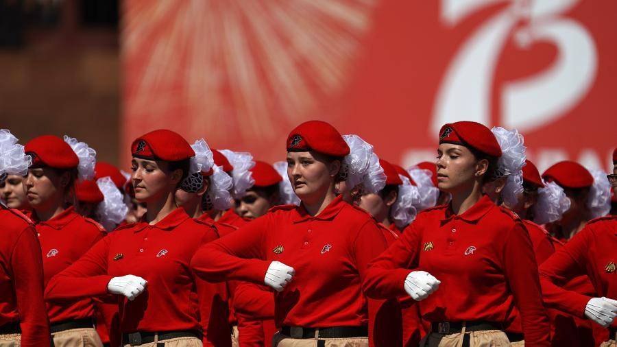 Участницы Всероссийского детско-юношеского движения «Юнармия» на параде Победы, 24 июня 2020 года